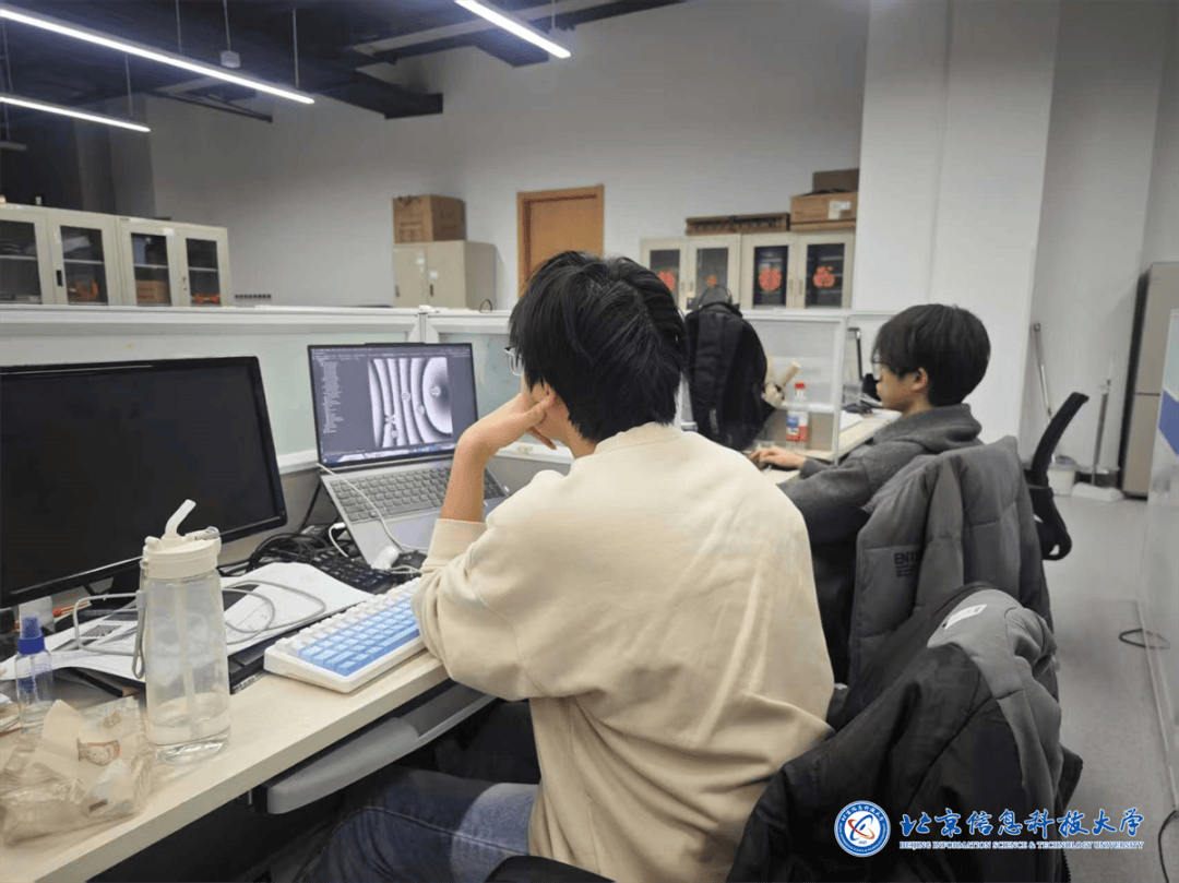 数学系各科研团队的研究热情并未因假期的到来而冷却,几名研究生正正在调试散斑丈量系统。