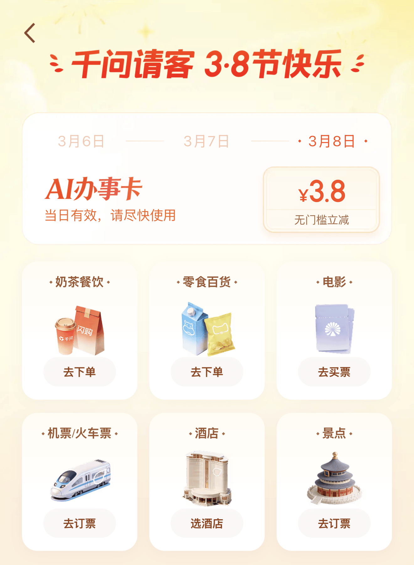 3月12日-3月15日,以及财力援助、弹药弥补。同时不竭强大AI焦点手艺研发团队规模,周靖人(阿里副总裁、阿里云CTO、阿里合股人)将继续率领通义尝试室推进后续工做,面向3.8节,千问App又推出了新一轮的「千问请客」勾当?